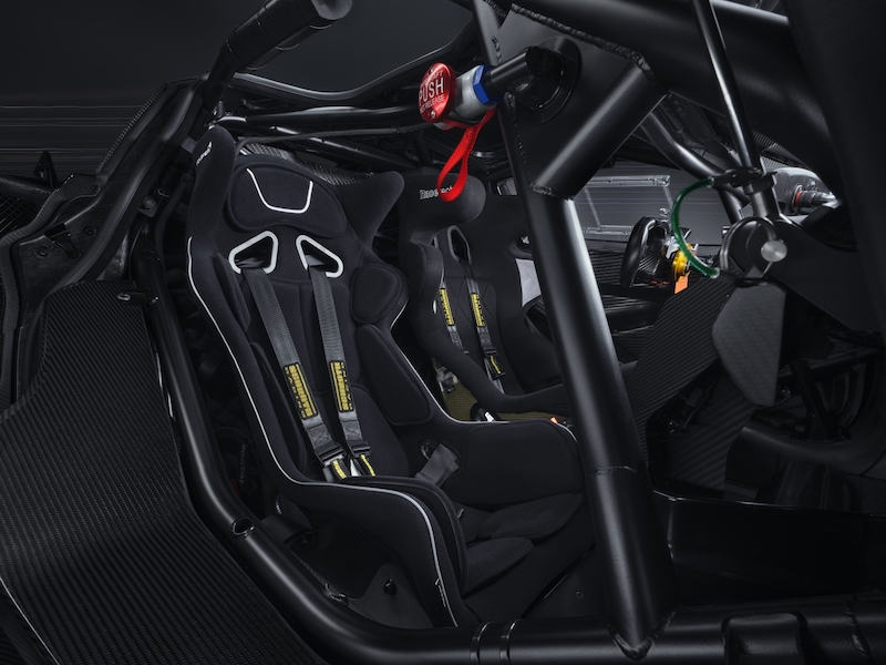 The stripped-out cabin features extensive use of lightweight carbon fibre and is designed around outright track performance and functionality. A carbon fibre and Kevlar FIA-approved race seat hugs the driver and weighs just 22lbs, while the pedal box and steering wheel adjust to ensure the perfect driving position. The ergonomically-designed race steering wheel is fitted with all key functions via intuitive rotary switches and buttons meaning everything is at the driver’s fingertips. Thrill seekers are also able to experience the speeds and exhilaration of the race track as the interior of the 720S GT3X has been designed to accommodate a fully safety-compliant passenger race seat, complete with six-point race harness. Modifications over the race track car include a revised design to the roll-cage and enhanced crash structures around the occupant safety cell.