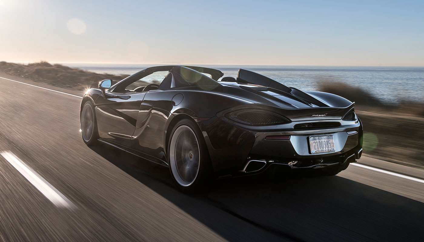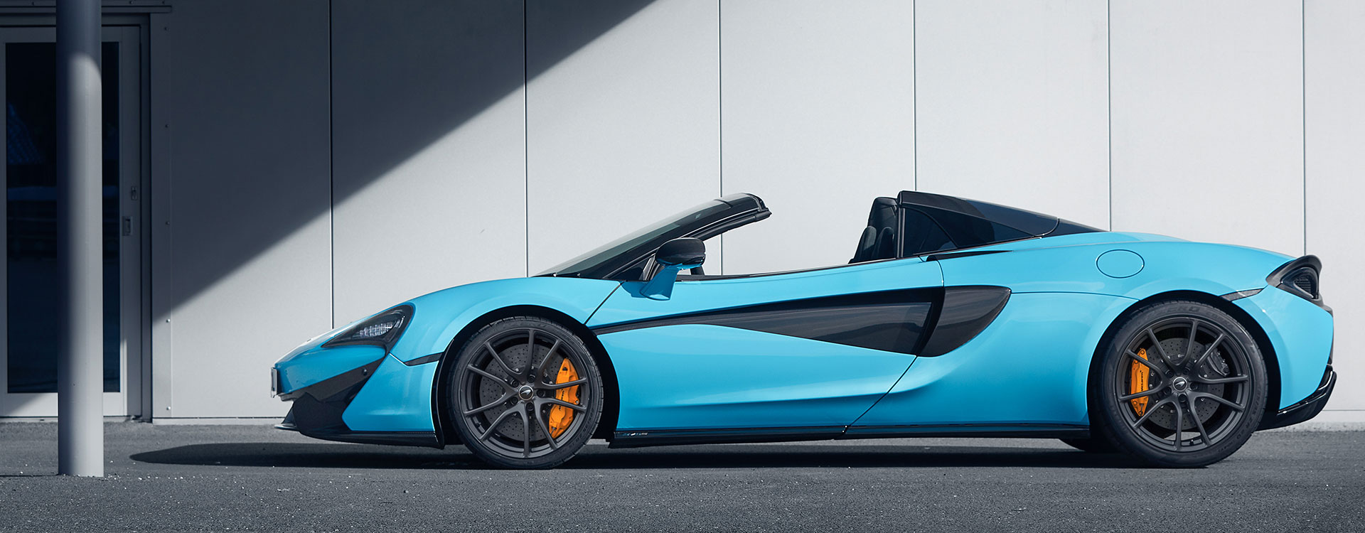 The 570S Spider is equally at home in the city as it is on a twisting mountain pass or your favourite racetrack. The Active Dynamics Panel lets you select the optimum setting for any road condition. Choose Normal, Sport or Track and the car responds accordingly – from a (relatively) sedate drive in town to an adrenalin-fuelled lap. The all-aluminium twin-turbocharged engine is mounted extremely low in the chassis behind the driver for enhanced agility and delivers a class-leading 570PS. The seven-speed seamless-shift gearbox can be used in Auto mode for maximum convenience, or controlled via steering-wheel-mounted rocker-shift paddles for manual gear selection. The 570S Spider stops as impressively as it accelerates. Carbon ceramic brakes fitted with 6-piston calipers at the front and four-pistons at the rear need only 32 metres to take the Spider from 100km/h to standstill.