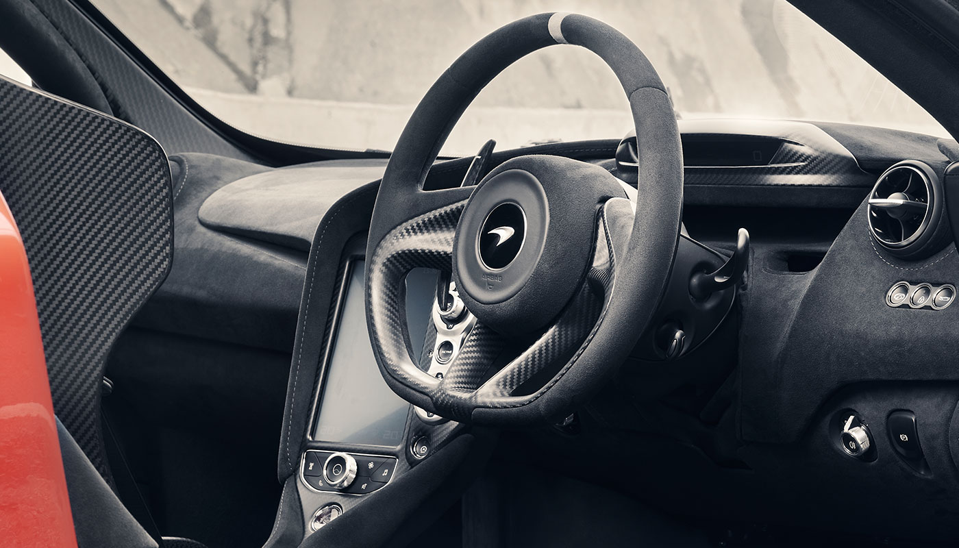 Your senses are treated to an intense, unfettered flow of information. From everywhere. The show stopping all-titanium quad-exit exhaust howls at higher revs. It’s unique and unforgettable. Stiffer engine mounts and polycarbonate glazing allow extra engine sound into the cabin. The trademark McLaren electro-hydraulic steering is sensitive and full of feel because of a quicker rack and stiffened steering torsion bar. On every corner, camber and surface, the specially developed Pirelli P Zero™ Trofeo tyres allow you to explore cornering speeds beyond the conventional limits. Underpinning everything is the highly advanced ProActive Chassis Control II system, with software and hardware updates designed to handle the outer limits. And engage with the driver more vividly. More clearly... The line between instinct and engineering blurred beyond recognition. Every great engine has an unmistakable voice. It speaks volumes for pedigree and performance. Setting this voice free takes a boldly designed, beautifully engineered exhaust. The quad-exit full-titanium exhaust system in the 765LT is dramatic and exquisitely formed. Power means nothing in isolation. It needs to be deployed through a perfect balance of dynamic abilities. The 765LT harnesses and unleashes its huge power with visceral precision.