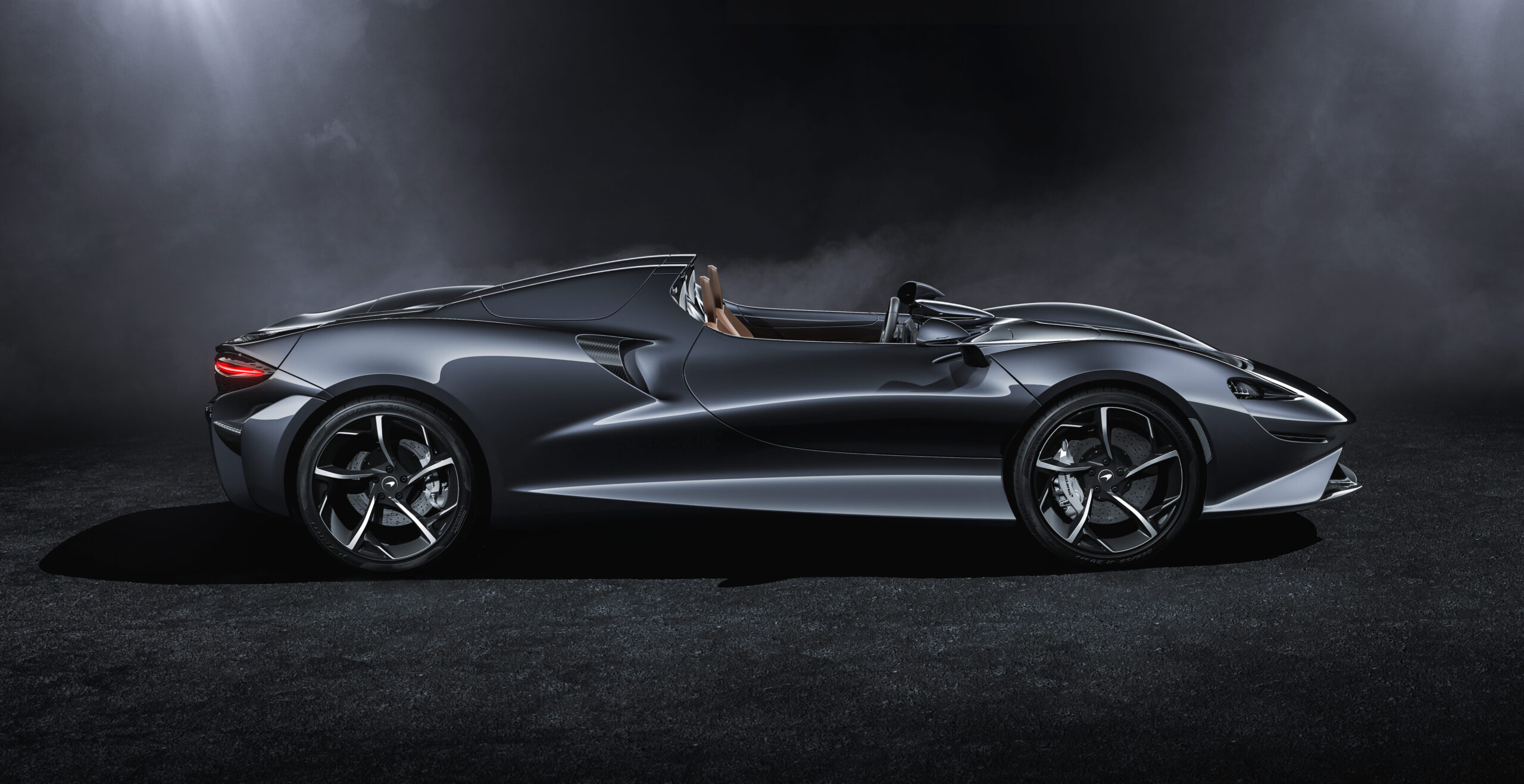 The lightest McLaren road car ever made proves that less is more. Loud and clear. Uncompromising hypercar construction uses a bespoke carbon fibre design based on Monocell II. The unique upper body also incorporates a deployable roll over protection system [ROPS] for maximum passenger safety. The stunning Full Carbon Fibre Body is made from just three main panels. This creates a clean, sculpted profile and stays true to the ultra-lightweight ethos. More weight is slashed thanks to the low-profile carbon fibre dihedral doors. Precision engineered and practical, they add a dramatic flourish as they rise from the deep curved sills. All resulting in the lightest road car we've built. Beneath the elegant forms of the tonneau cover is enough space for everyday belongings and – of course – the driver's helmet.