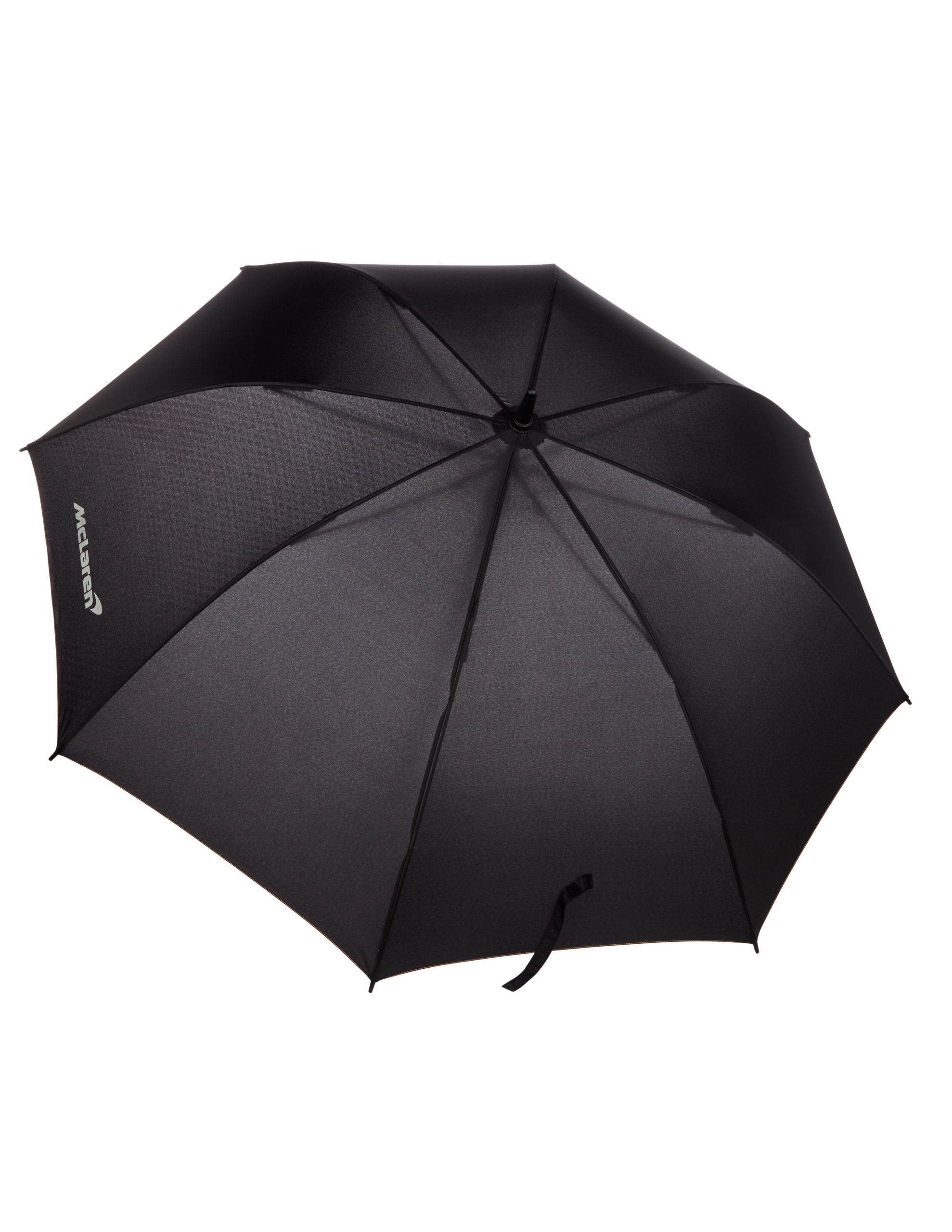 BIG, STRONG AND BUILT FOR STORMS, THIS UMBRELLA WILL DO THE JOB WHETHER YOU’RE OUT ON THE GOLF COURSE OR STANDING IN THE PITLANE. DESIGNED WITH AN EMBEDDED MCLAREN BRAND PATTERN, WHICH BECOMES VISIBLE ONLY WHEN THE RAIN HITS IT. PRESENTED IN BLACK WITH CONTRASTING SILVER MCLAREN LOGO.