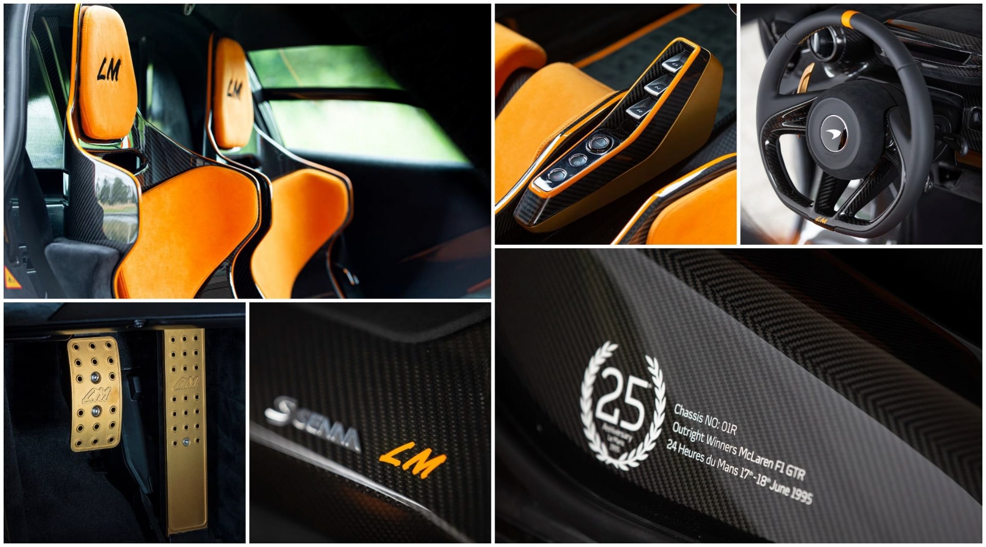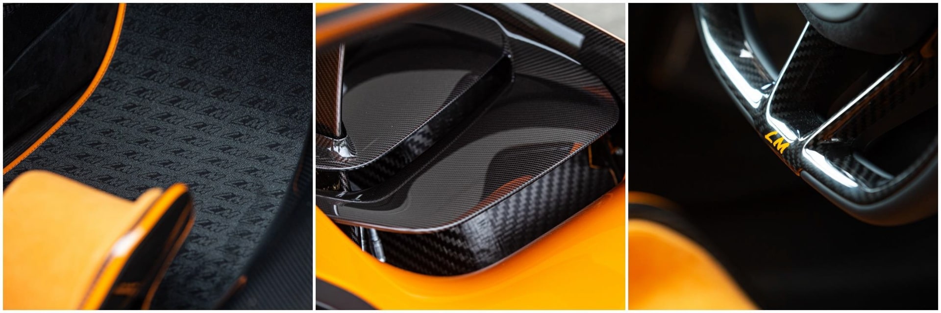 With the same engine as a Senna GTR at 814 hp, but released for the streets, these exclusive Sennas are much more than a bespoke paint livery. To pay homage to the original Fl LM cars, these tributes feature upgrades such as: new polished ports and cylinder heads for the (more powerful) engine, OZ aluminum wheels, quad exhausts tipped in satin gold, bespoke aerodynamically-enhanced bodywork, a 24k gold heatshield, fully bespoke interior including Titanium Nitride foot pedals, racing centre locks, and bespoke LM branding both inside and outside.