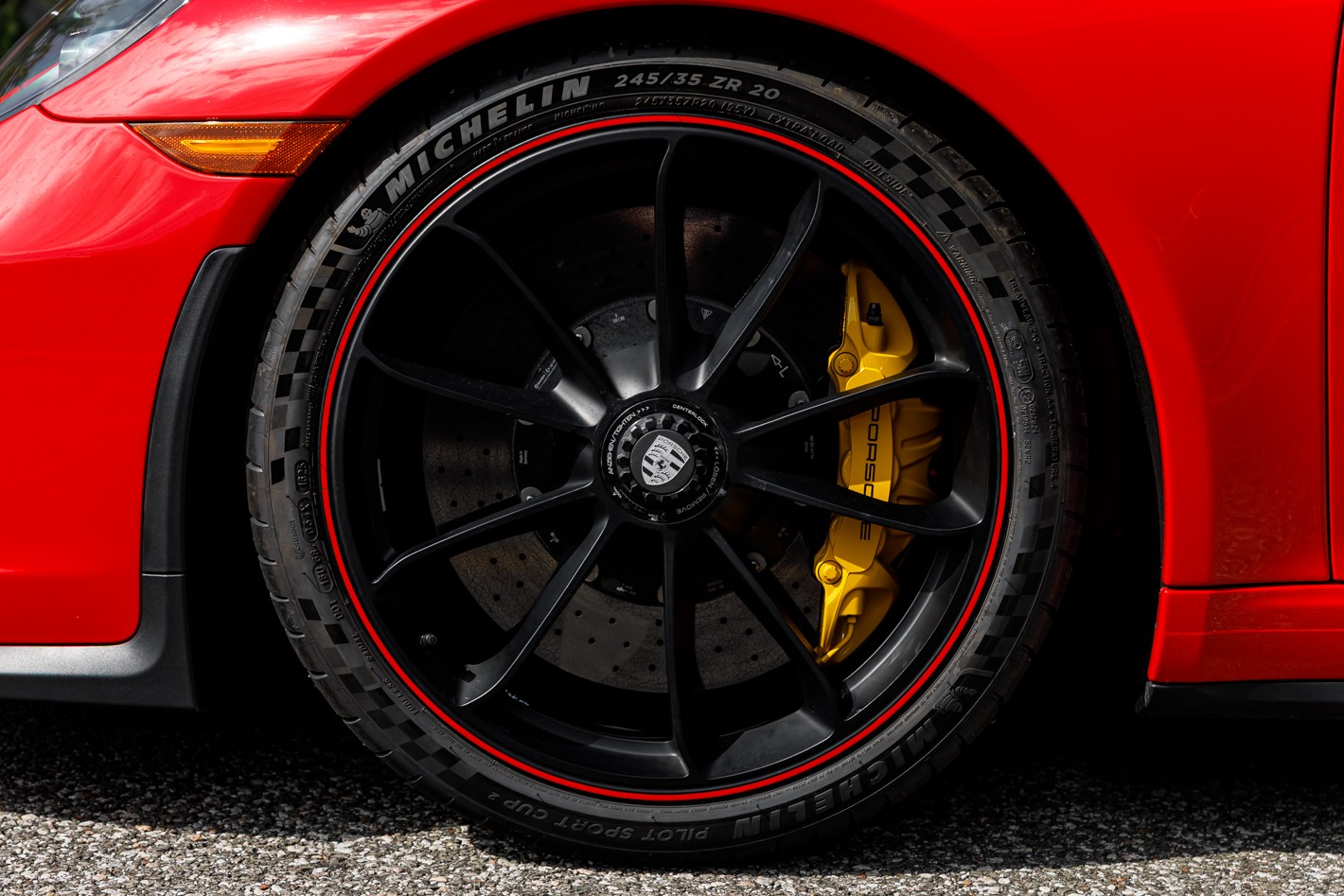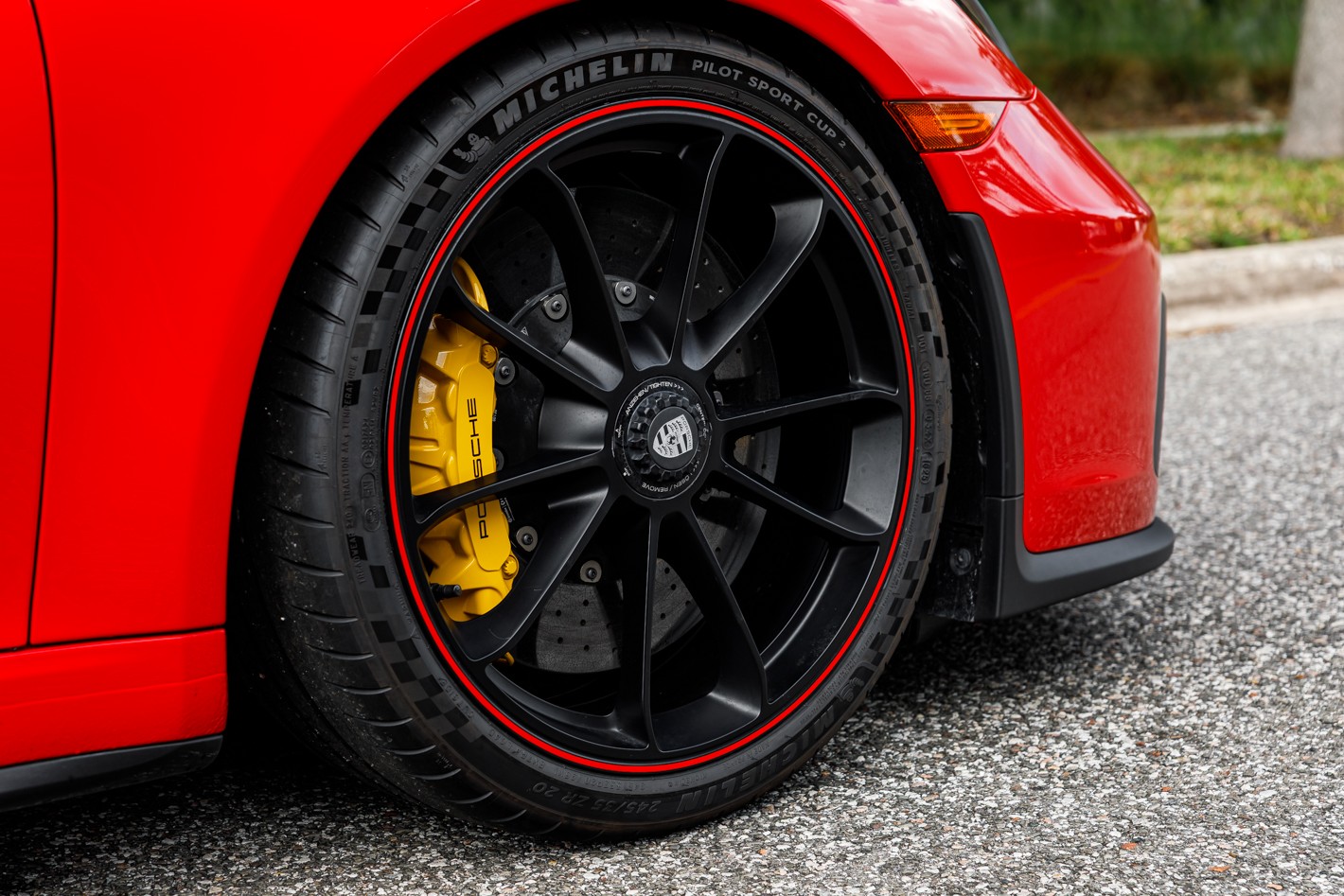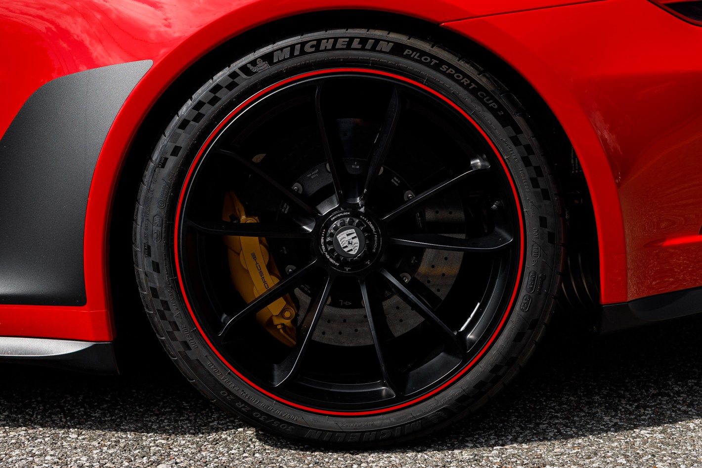 - Wheels Painted in Satin Black with Outer Lip in Guards Red
